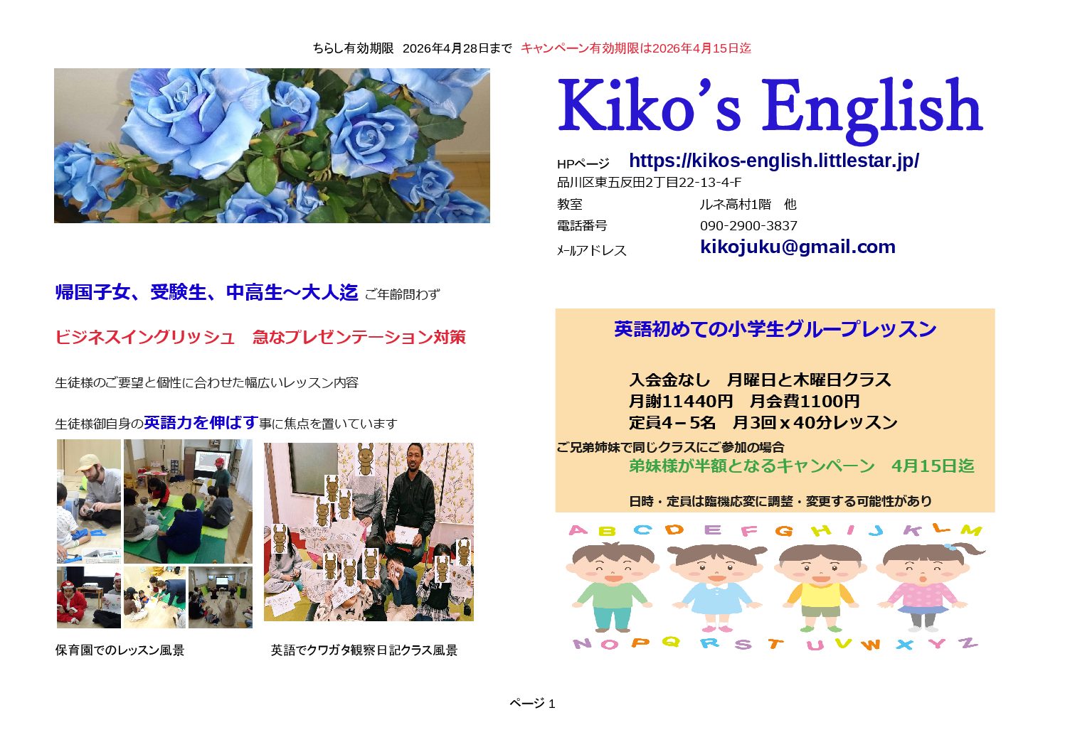 2026年2月より港区南青山3丁目で新しく英語教室をスタートいたします。 大崎の教室は去年 […]